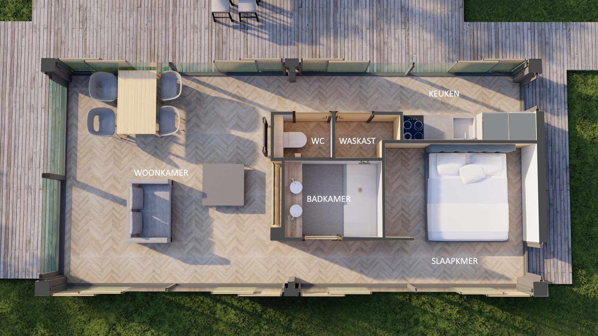De CUB Recreatiewoning biedt alles wat je nodig hebt voor een comfortabel verblijf, met aandacht voor detail en hoogwaardige afwerking.